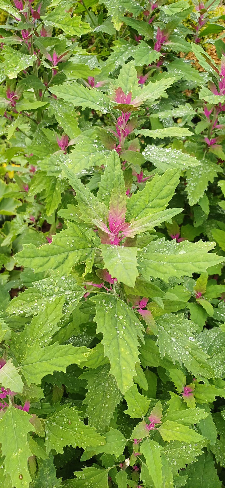 Another range of plants that we have included is the Magenta Spreen which is a type of tree spinach (left), totally delicious and really pretty in the garden and in salads. Red Orache (right) is another type of spinach which is loving the walled garden.